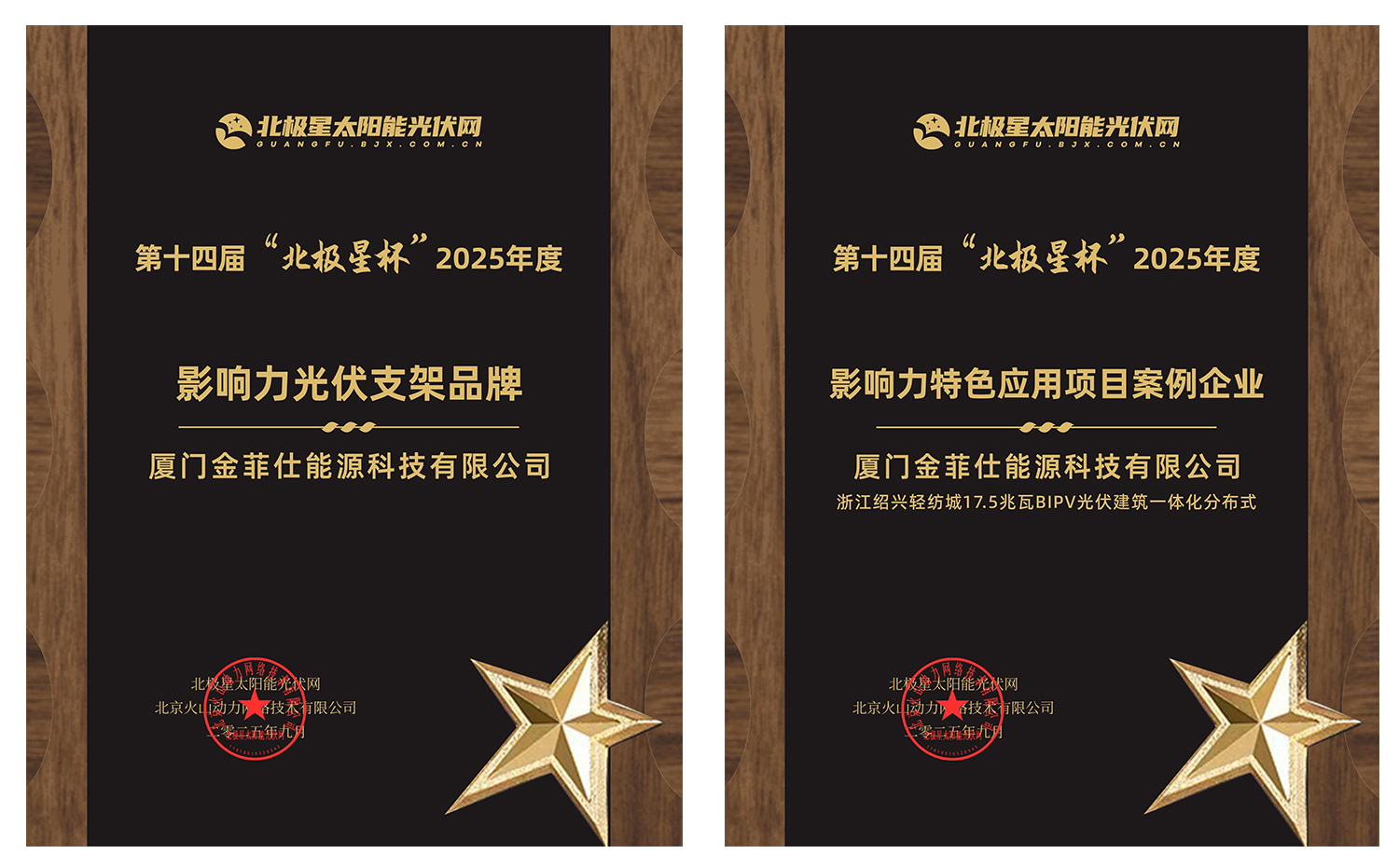 2025年9月9日,第十四屆“北極星杯”光伏影響力品牌評選頒獎典禮在江蘇南京隆重舉行。現場星光匯聚,百余家優秀企業斬獲殊榮,近300位行業嘉賓齊聚現場,共同見證這一榮耀時刻。在這場光伏行業的年度盛會中,廈門金菲仕能源科技有限公司(以下簡稱“金菲仕”)脫穎而出,憑借其在光伏支架領域的卓越表現和品牌影響力,成功摘得兩項大獎。